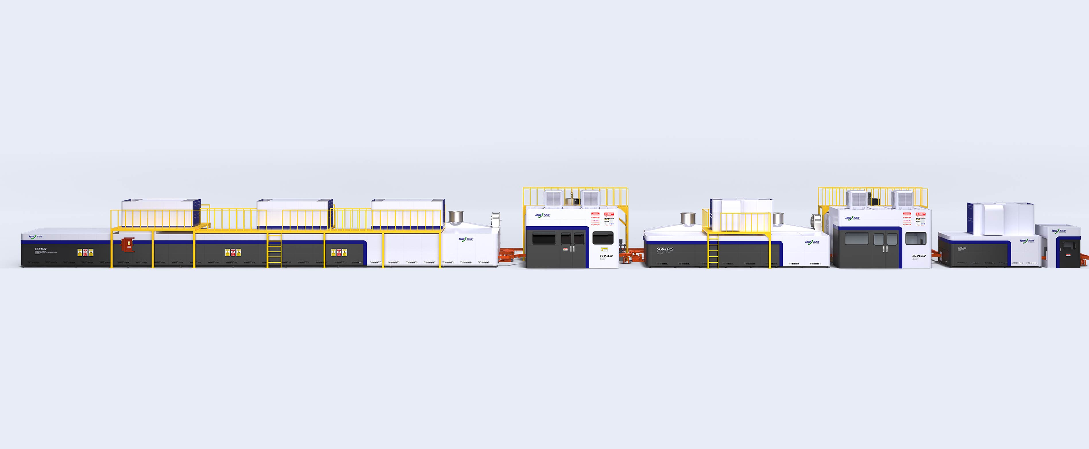 本产品为一种用于工件的全自动节能喷涂流水线,包括依次连接的除尘柜、预热炉、底漆喷房、底漆固化炉、面漆喷房、余热回收三段、余热回收二段、余热回收一段和高温固化段。